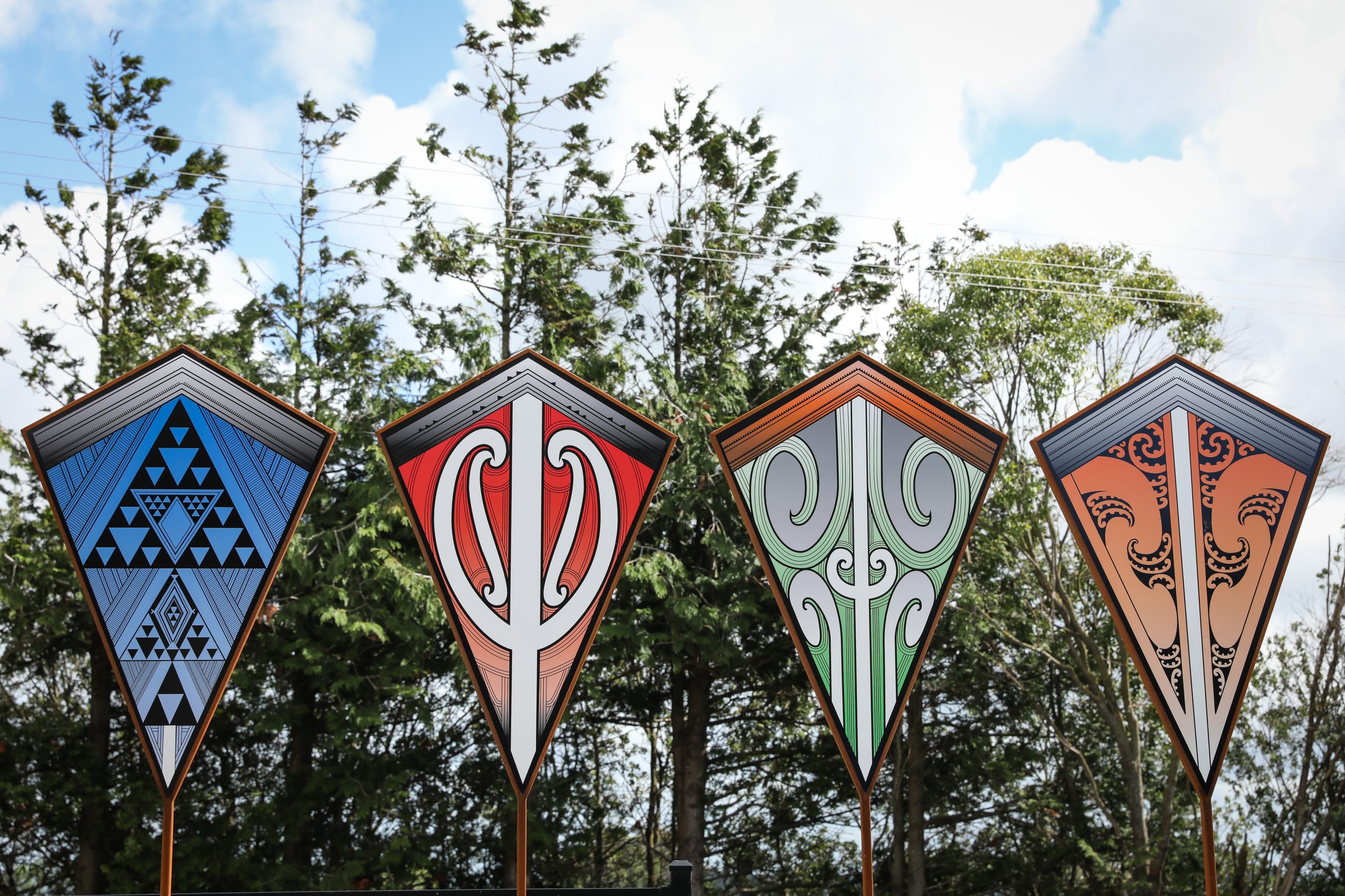 As a manu tukutuku (kite) ascends, it is trying to reach its peak or highest point. Our school uara are this shape because we want our ākonga to strive for excellence when embracing these. The beautiful designs of our uara below were created by local artist Pita Savage (Ngāti Raukawa ki te Tonga, Ngāti Parewahawaha, Te Arawa rāua ko Ngāi Tūhoe).