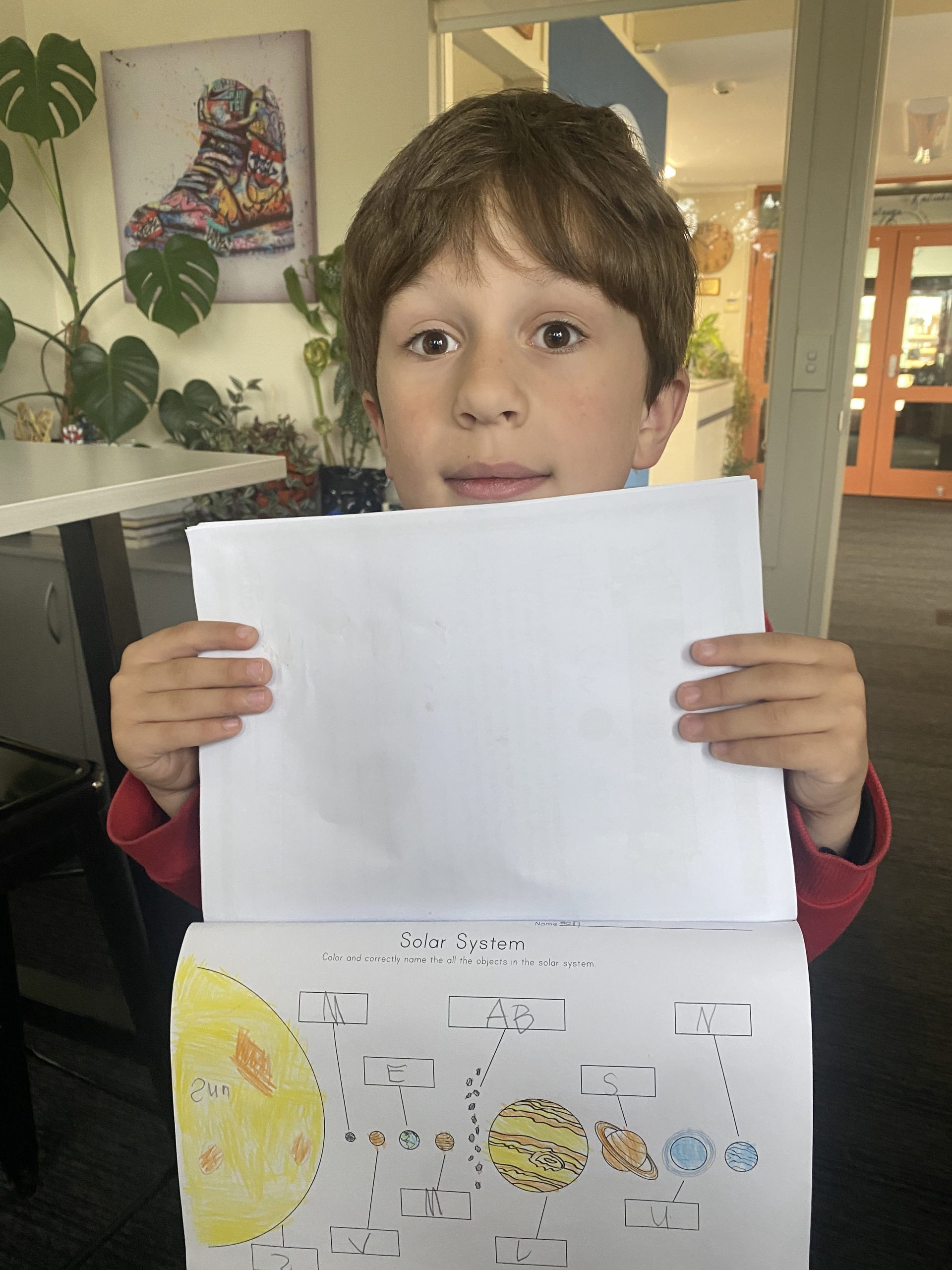 - Ben from Mataī shared with me his learning about space. If you want to know anything about our solar system, Ben is your guy! You can see him showing me his favourite page. Ka rawe (Awesome).
