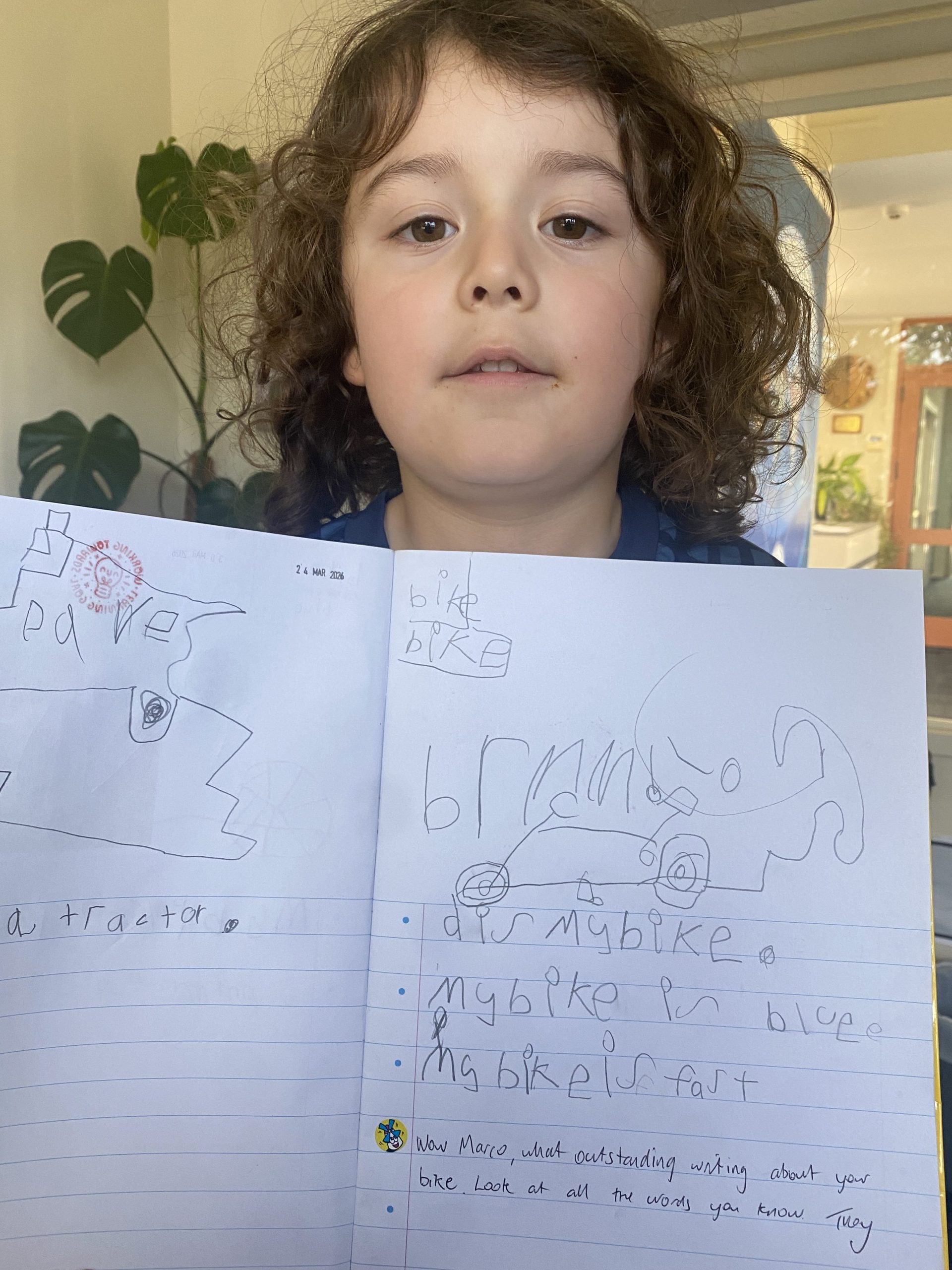 - Marco from Rimu showed me the amazing writing he did all by himself. Wow, 5 years old and you can already write independently? Ka pai tō mahi (Great work) Marco!