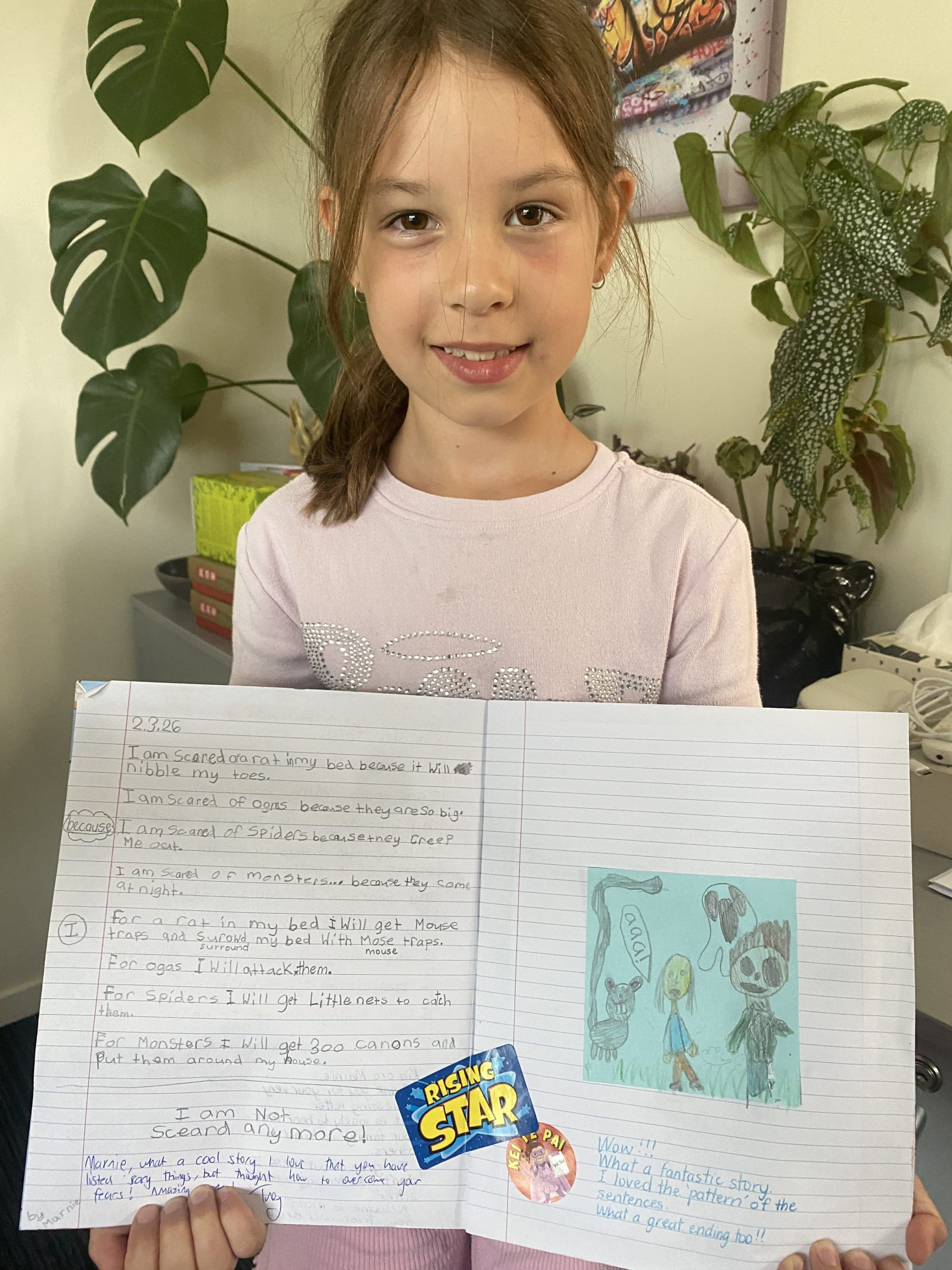 Marnie is pretty well known at school for her amazing writing ability and last week she came and shared her amazing story about things that scare her and what she’s going to do to overcome them. Check it out above. Ka pai tō mahi Marnie! (Great work)