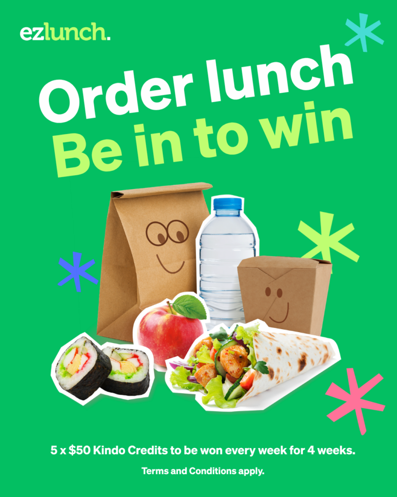 Every Ezlunch order placed between 27th April – 22nd May goes in the draw to win a $50 Kindo credit each week. We offer Domino’s every Wednesday and Subway every Friday. You can order through Ezlunch.