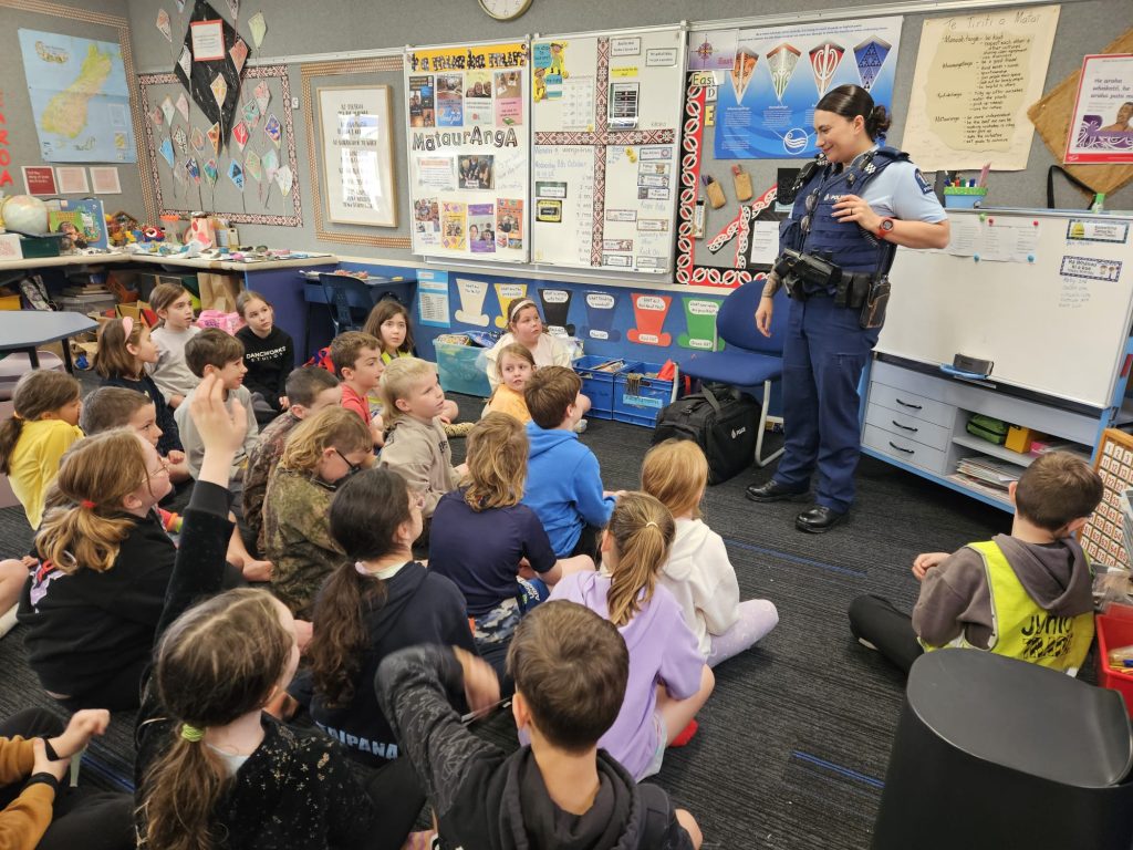 On Wednesday, we were lucky to have our School Community Officer Nikita Joyce come and make herself known to us all, as she spent 30 minutes in each class building whanaungatanga (relationships) with our tamariki. She thoroughly enjoyed her time and our kids loved asking her questions about her role in the police. She even let some of them try on her police attire. More information about her can be viewed here.