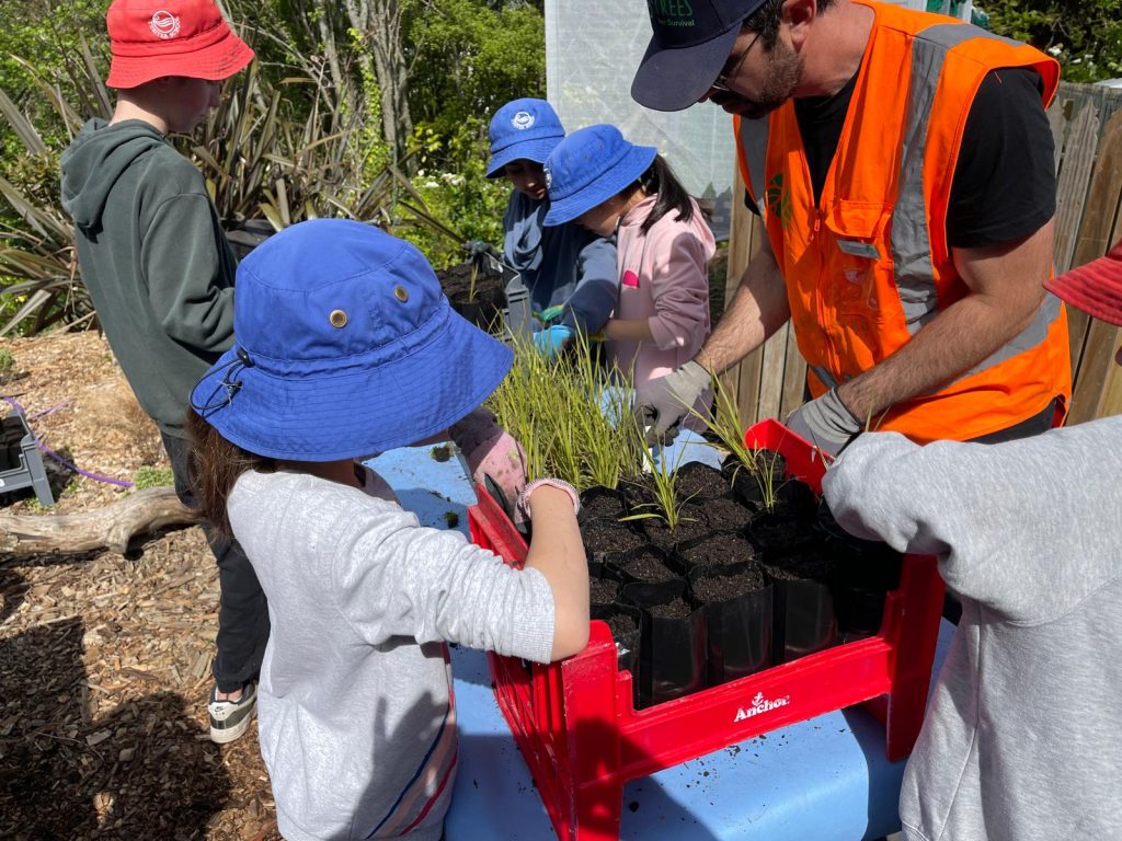 Also on Tuesday, we had a School Planting Day down in our Microforest. We were grateful to have Mark from Trees for Survival come and help teach us how to replant small seedlings into bigger reusable plastic bags. These were then transferred into our shade houses, which is situated down by our staff carpark, to grow, so this time next year, we can put them in the ground. He commented on how great our kids were at doing this and we explained that they are very able in the garden, so make sure you take advantage of this skill at home whānau!
